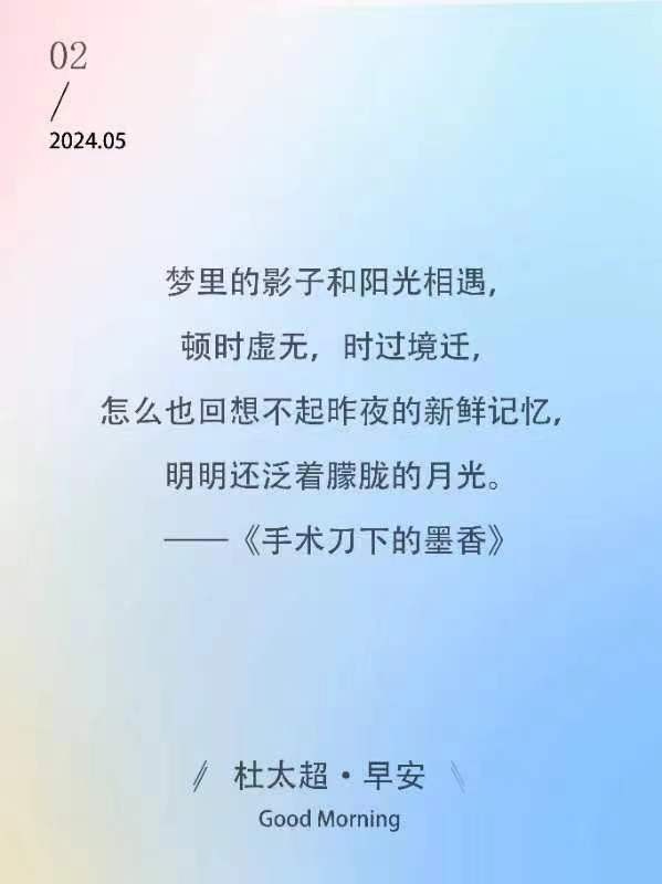 梦里的影子和阳光相遇,顿时虚无,时过境迁,怎么也回想不起昨夜的新鲜记忆,明明还泛着朦胧的月光。——《手术刀下的墨香》