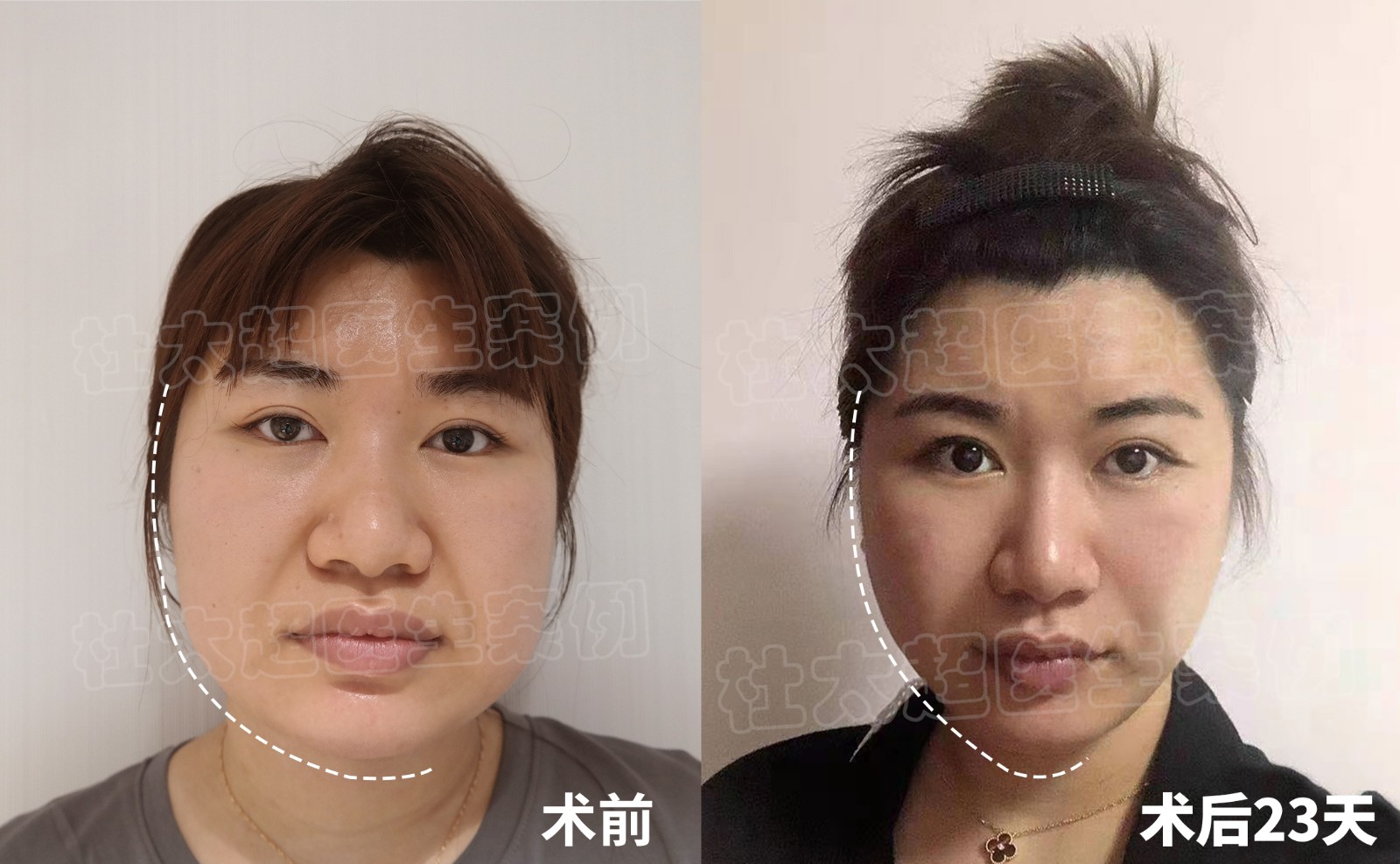 42岁,#caw小切口面部提升 +钻石精雕,术前法令纹明显,下颌缘不清晰,术后23天法令纹消失,下颌缘紧致提升,整个轮廓线条变流畅。