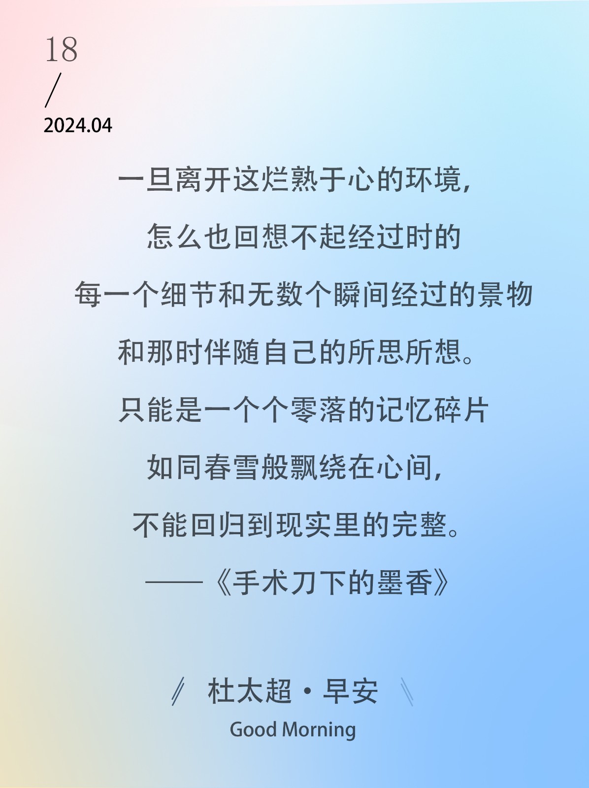 一旦离开这烂熟于心的环境,怎么也回想不起经过时的,每一个细节和无数个瞬间经过的景物和那时伴随自己的所思所想。只能是一个个零落的记忆...