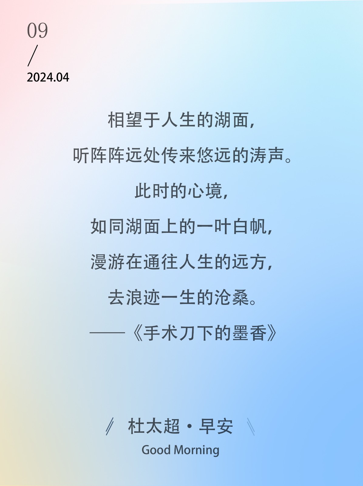相望于人生的湖面,听阵阵远处传来悠远的涛声。此时的心境,如同湖面上的一叶白帆,漫游在通往人生的远方,去浪迹一生的沧桑。——《手术刀...