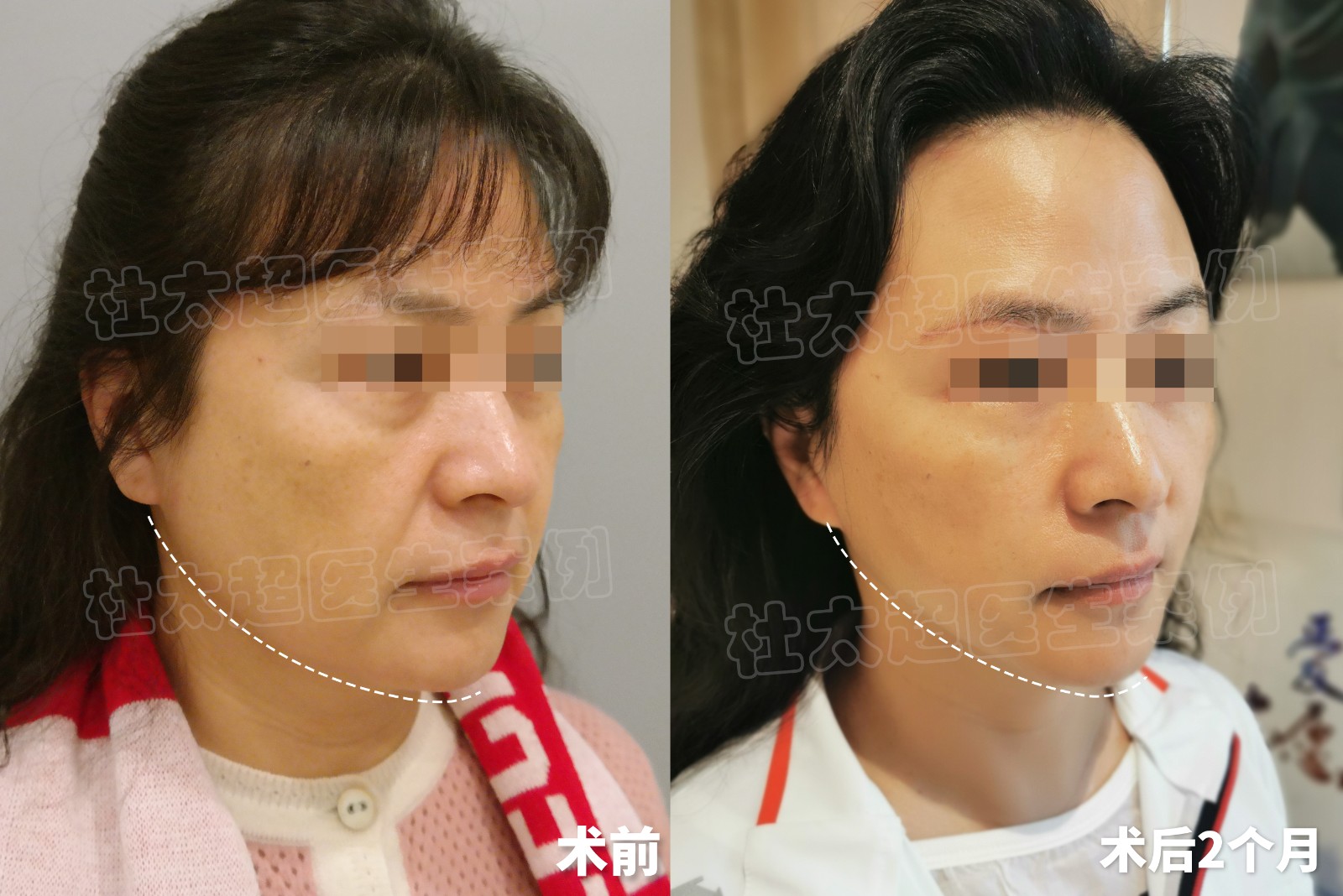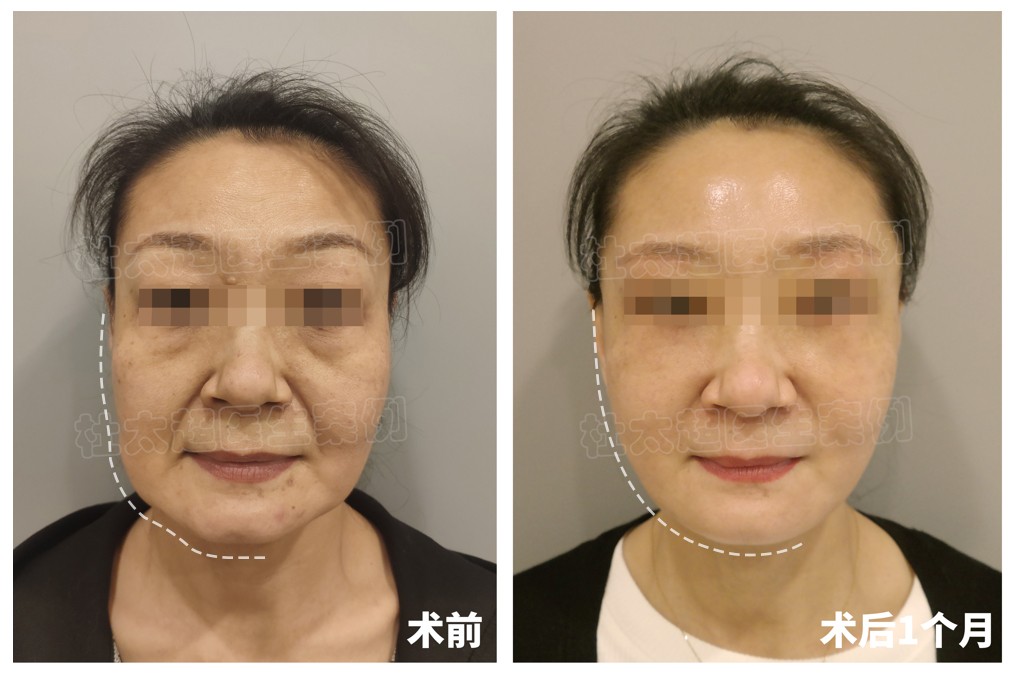 52岁,#caw小切口面部提升 +钻石精雕,术前法令纹深,下颌缘不清晰,术后2个月法令纹消失,下颌缘紧致提升,整个轮廓线条变流畅。
