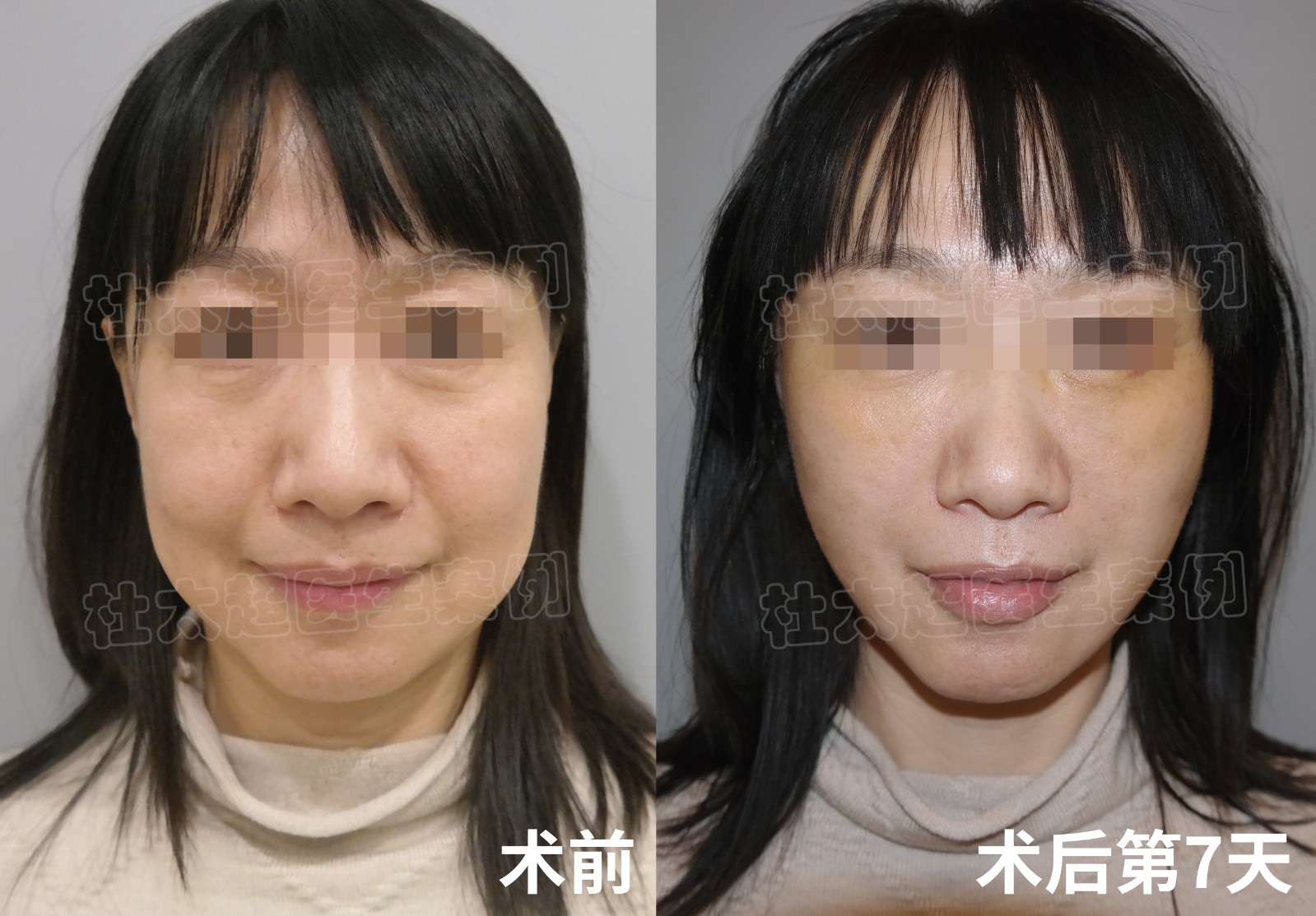 50岁,#caw小切口面部提升 +钻石精雕+去眼袋,术前眼袋膨出,苹果肌下垂,法令纹深,下颌缘不清晰,术后眼袋消失,苹果肌复位,改善法令纹...