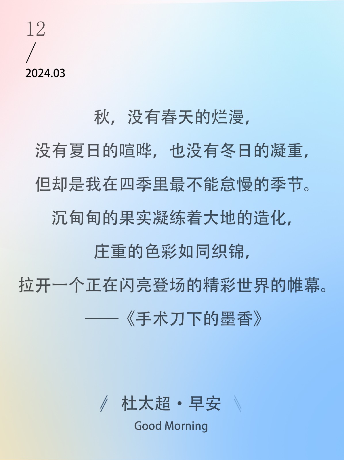 秋,没有春天的烂漫,没有夏日的喧哗,也没有冬日的凝重,但却是我在四季里最不能怠慢的季节。沉甸甸的果实凝练着大地的造化,庄重的色彩如...