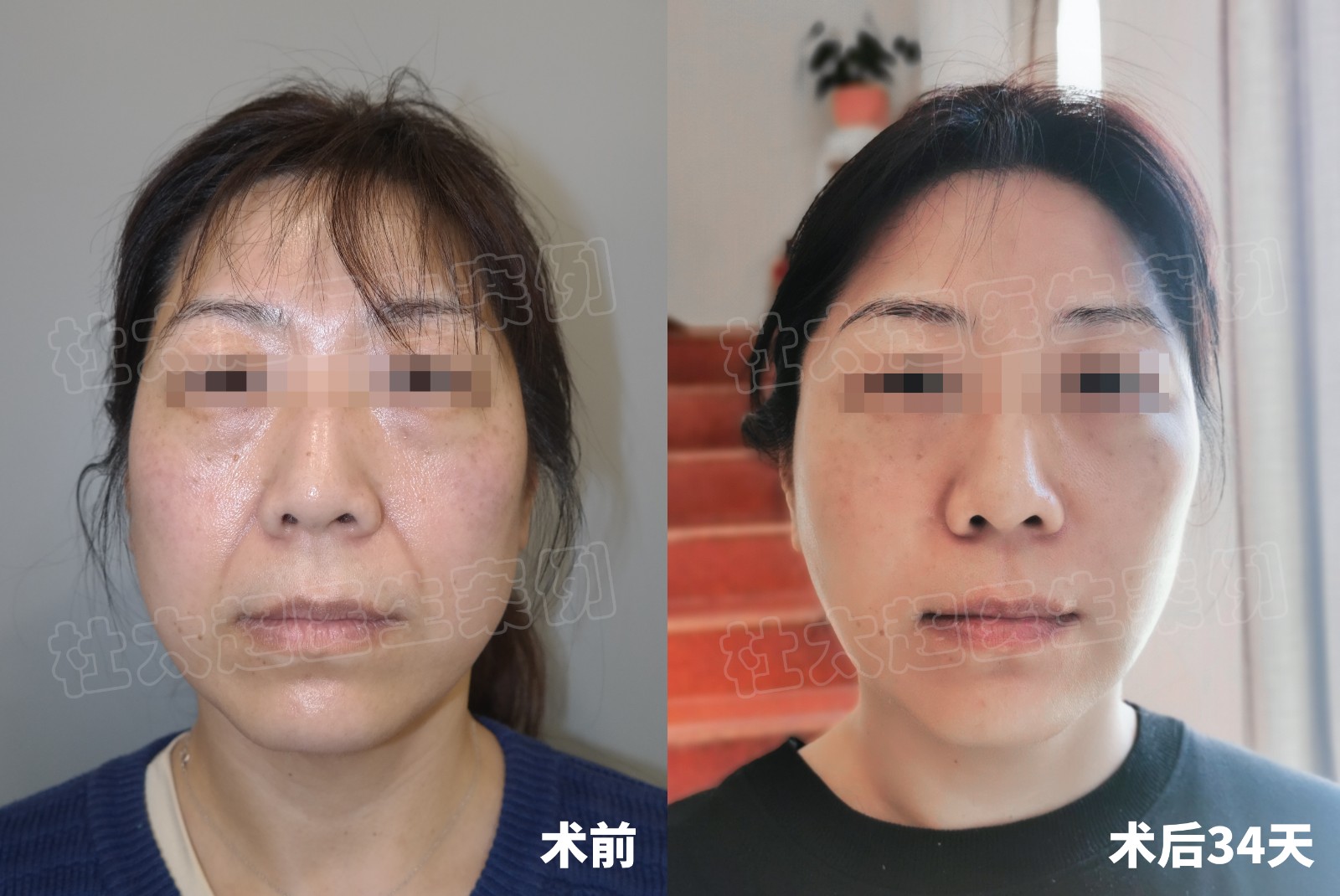 39岁,#caw小切口面部提升 +钻石精雕,术前法令纹深,下颌缘脂肪堆积,术后6个月法令纹消失,下颌缘清晰可见,拥有紧致流畅轮廓线才是年轻。