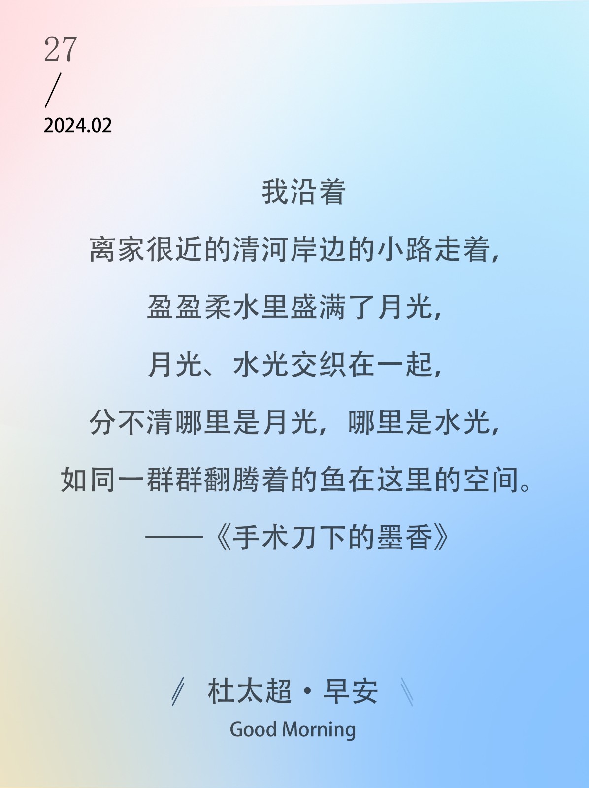 我沿着离家很近的清河岸边的小路走着,盈盈柔水里盛满了月光,月光、水光交织在一起,分不清哪里是月光,哪里是水光,如同一群群翻腾着的鱼...
