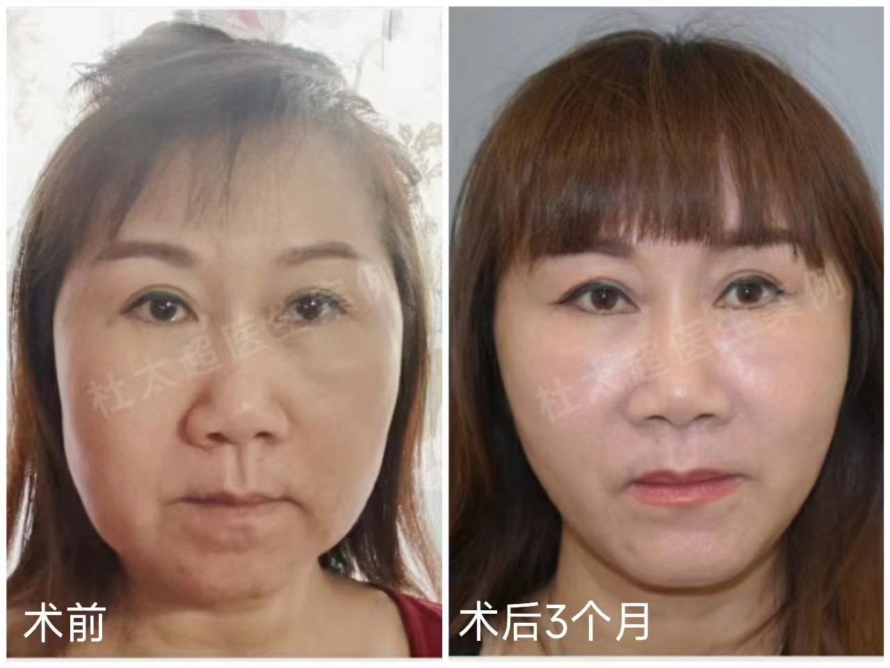 54岁#caw小切口面部提升,术前:下颌缘脂肪堆积,法令纹明显,口角囊袋,术后:下颌缘紧致,法令纹淡化,口角囊袋消失,瘦脸效果明显。
