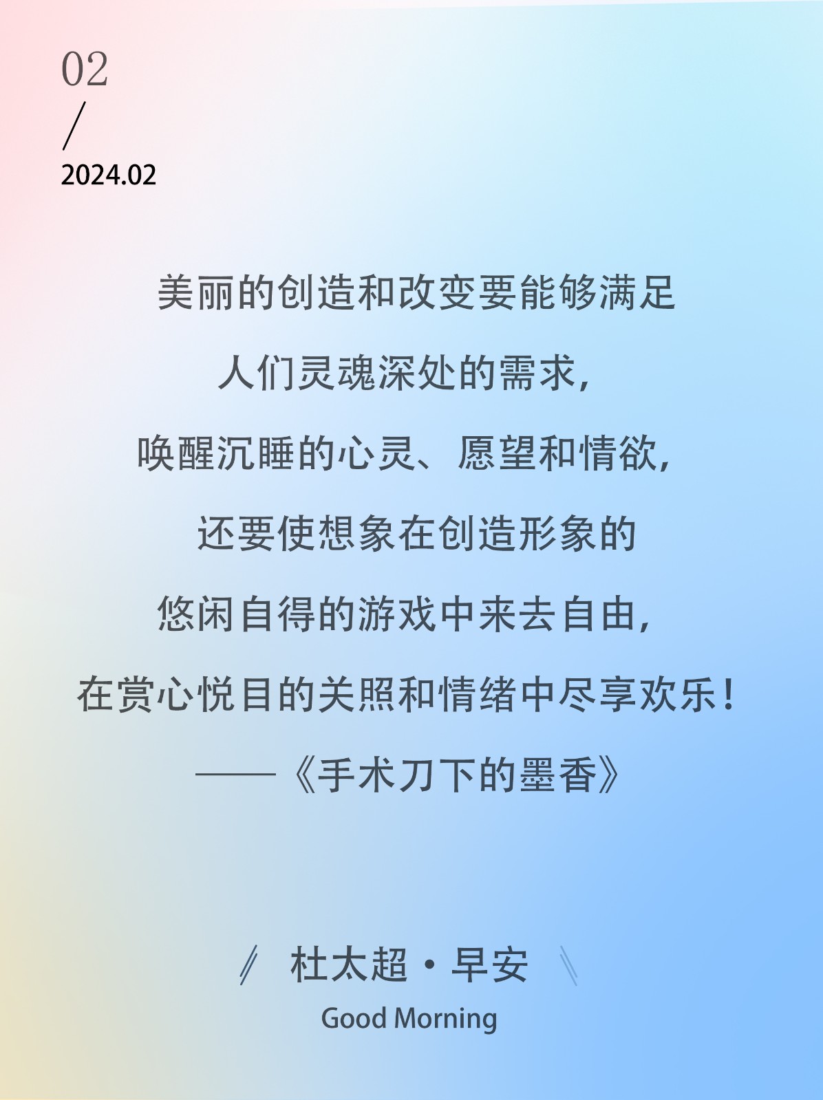 美丽的创造和改变要能够满足人们灵魂深处的需求,唤醒沉睡的心灵、愿望和情欲,还要使想象在创造形象的悠闲自得的游戏中来去自由,在赏心悦...