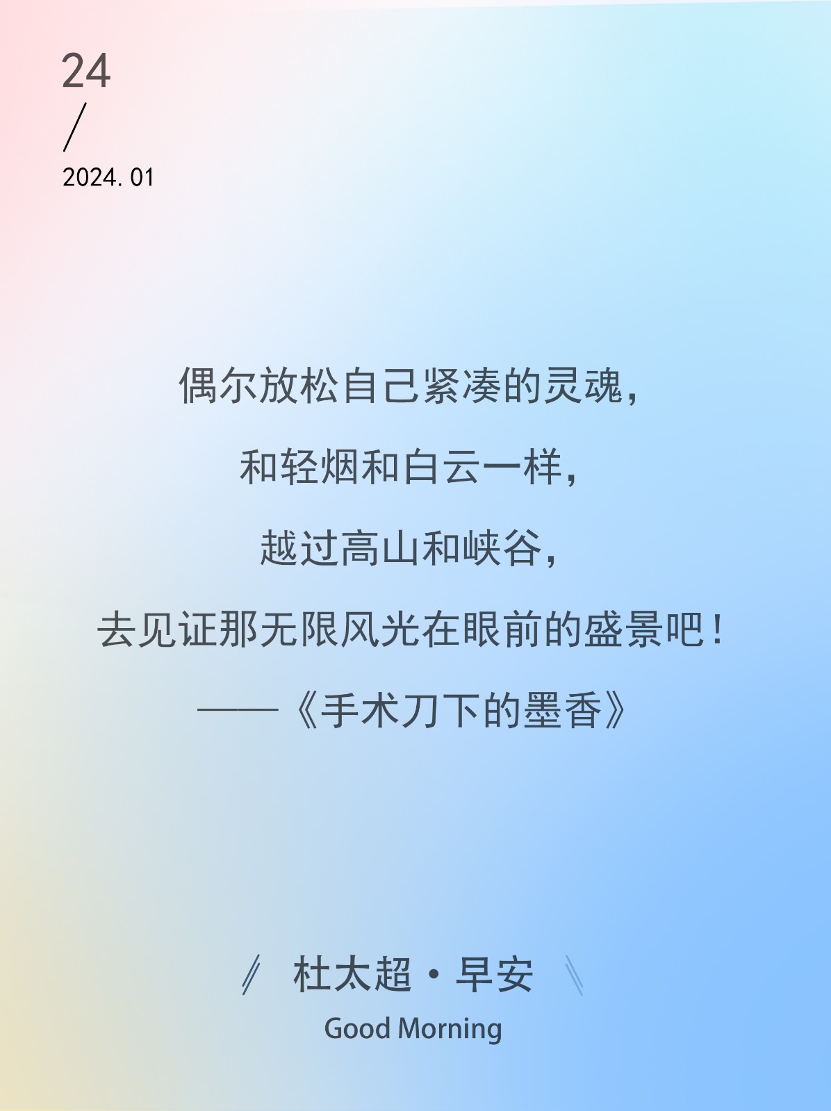 偶尔放松自己紧凑的灵魂,和轻烟和白云一样,越过高山和峡谷,去见证那无限风光在眼前的盛景吧!——《手术刀下的墨香》