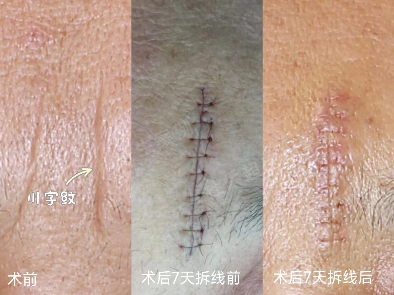 【川字纹切除案例】手术去除川字纹有三种方式,即眉头小切口除皱术、额中发际线内小切口除皱术和川字纹切除术对于这种深邃的静态川字纹,我...