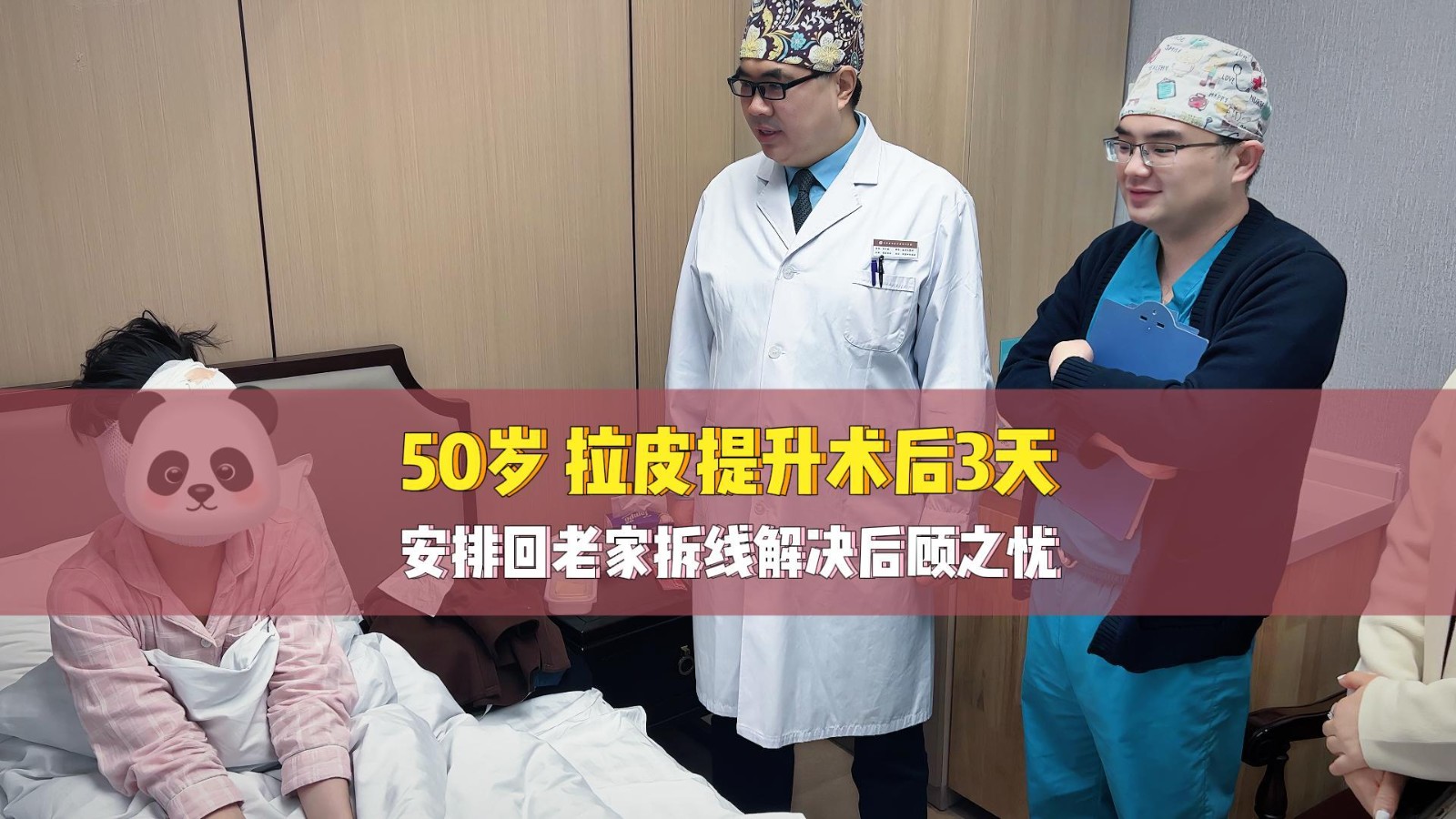 50岁,拉皮提升术后3天,安排回老家拆线解决后顾之忧!
