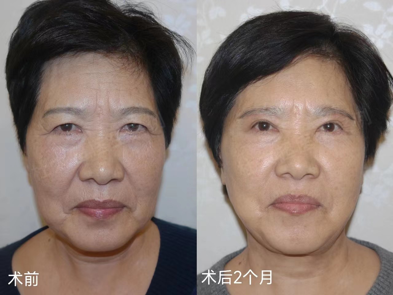 额纹去除+眼皮提升+中下面部提升术后2个月,变化如图