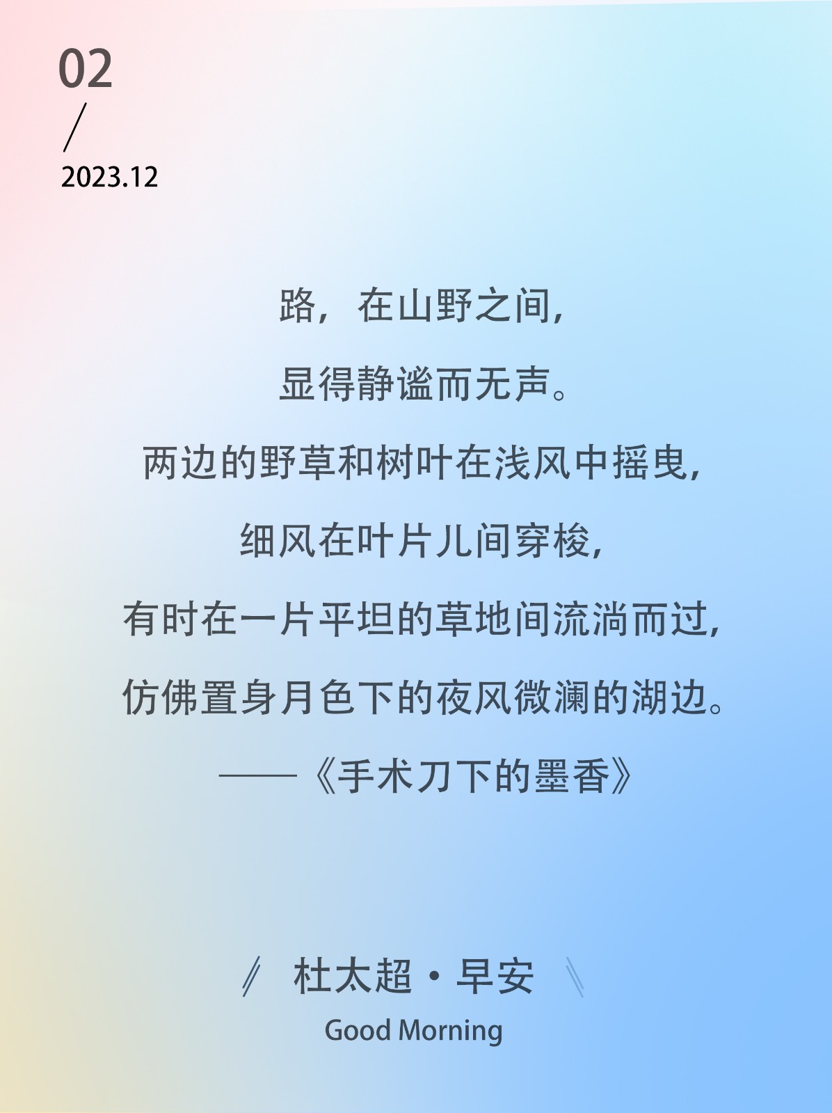 路,在山野之间,显得静谧而无声。两边的野草和树叶在浅风中摇曳,细风在叶片儿间穿梭,有时在一片平坦的草地间流淌而过,仿佛置身月色下的...