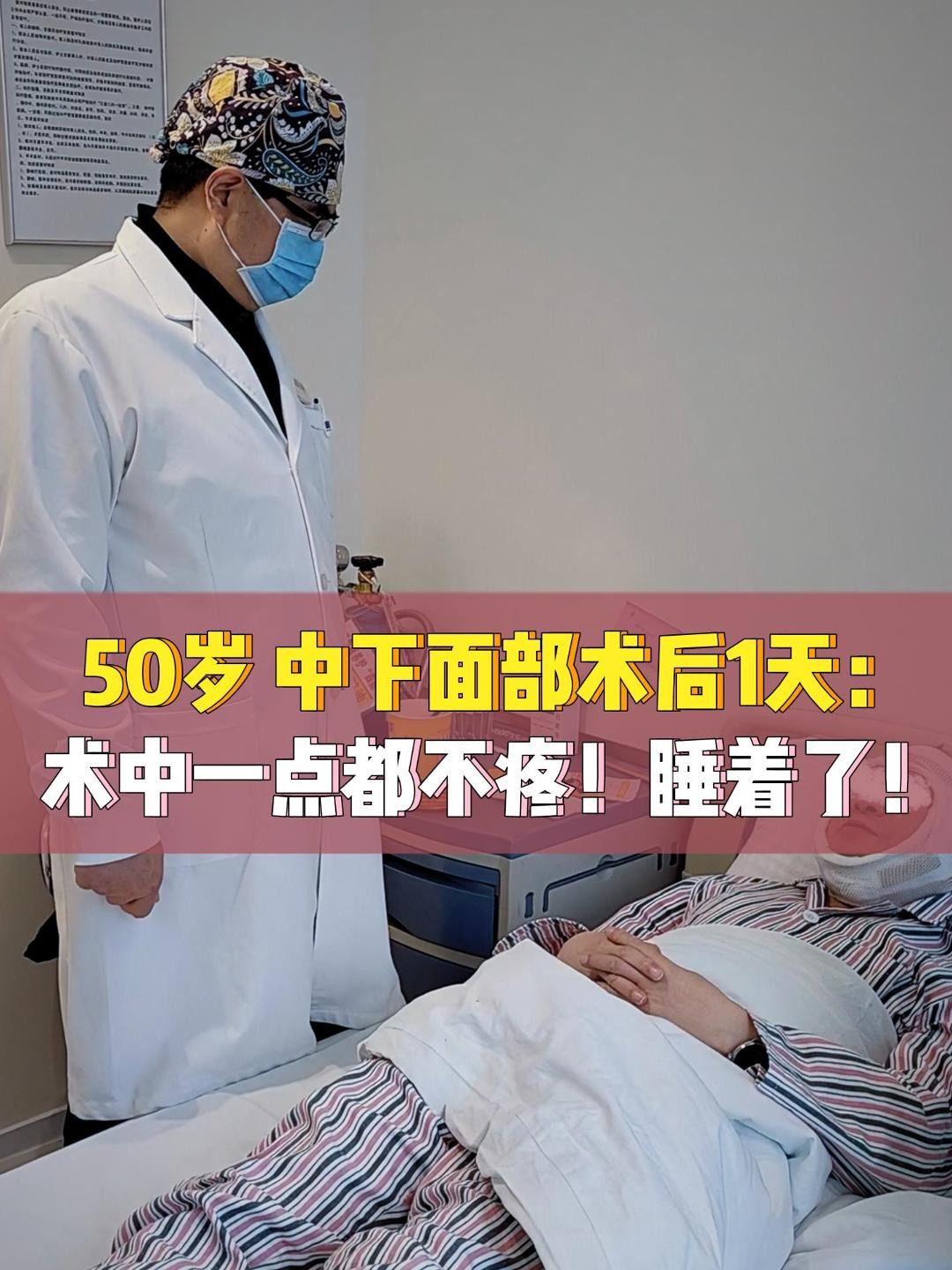 50岁,中下面部术后1天:术中一点都不疼!睡着了!