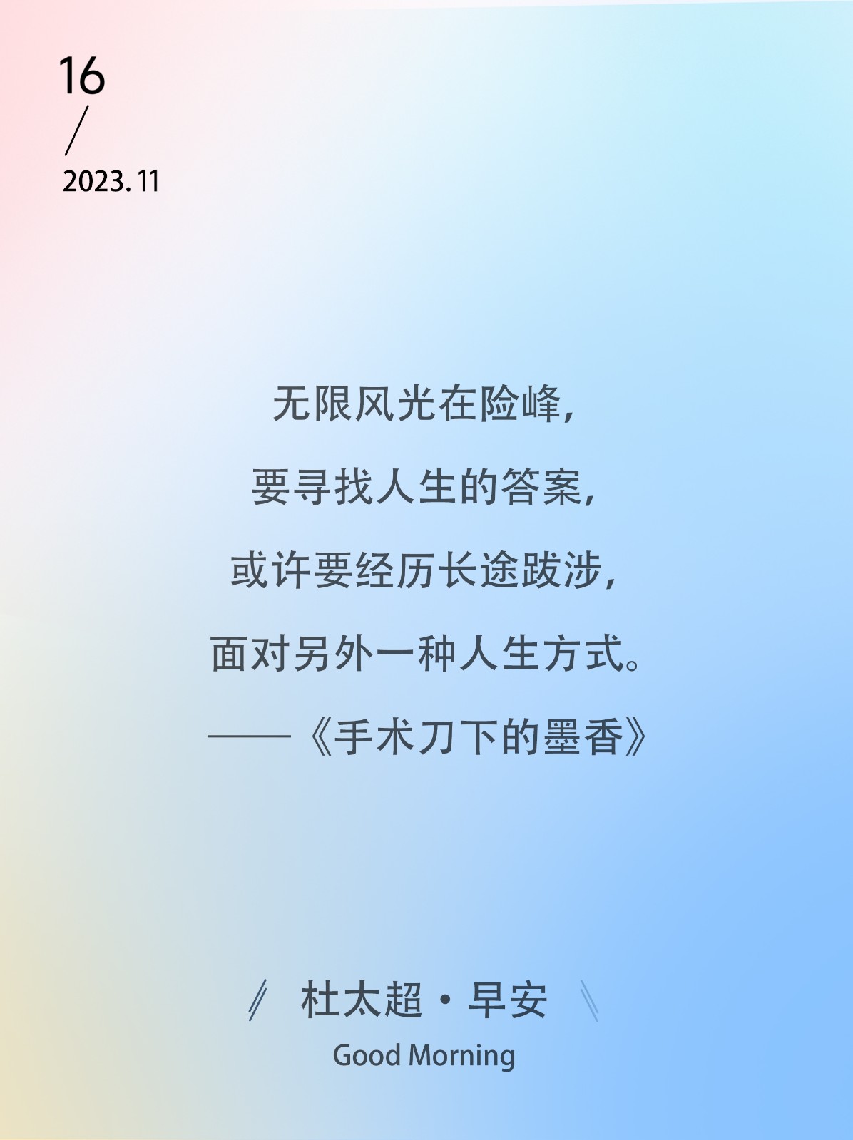 无限风光在险峰,要寻找人生的答案,或许要经历长途跋涉,面对另外一种人生方式。——《手术刀下的墨香》