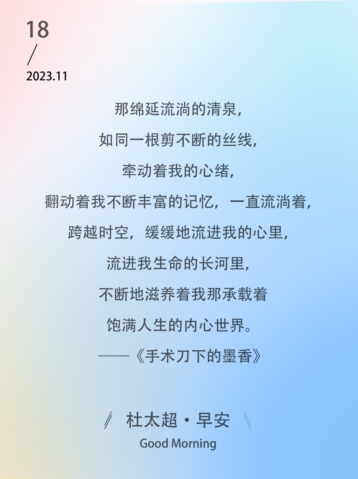 那绵延流淌的清泉,如同一根剪不断的丝线,牵动着我的心绪,翻动着我不断丰富的记忆,一直流淌着,跨越时空,缓缓地流进我的心里,流进我生...