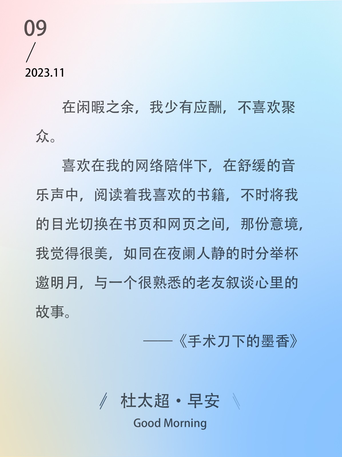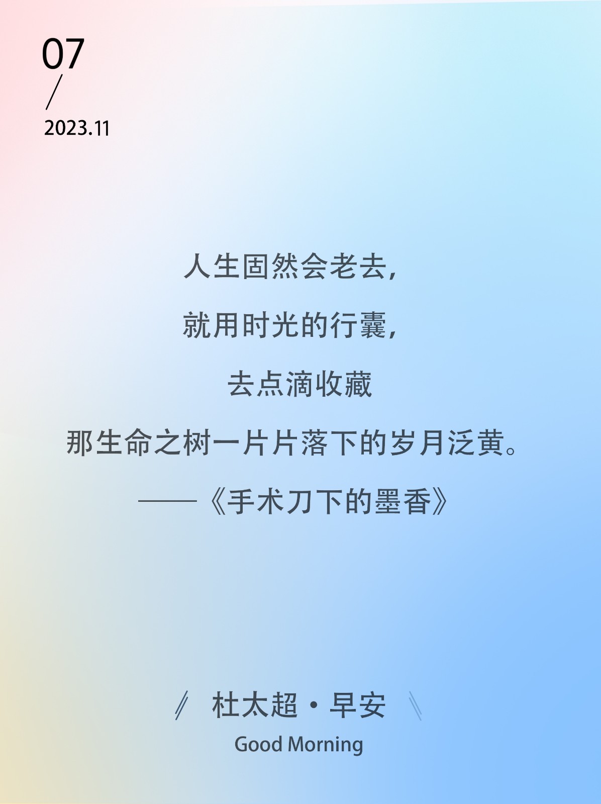 人生固然会老去,就用时光的行囊,去点滴收藏,那生命之树一片片落下的岁月泛黄。——《手术刀下的墨香》