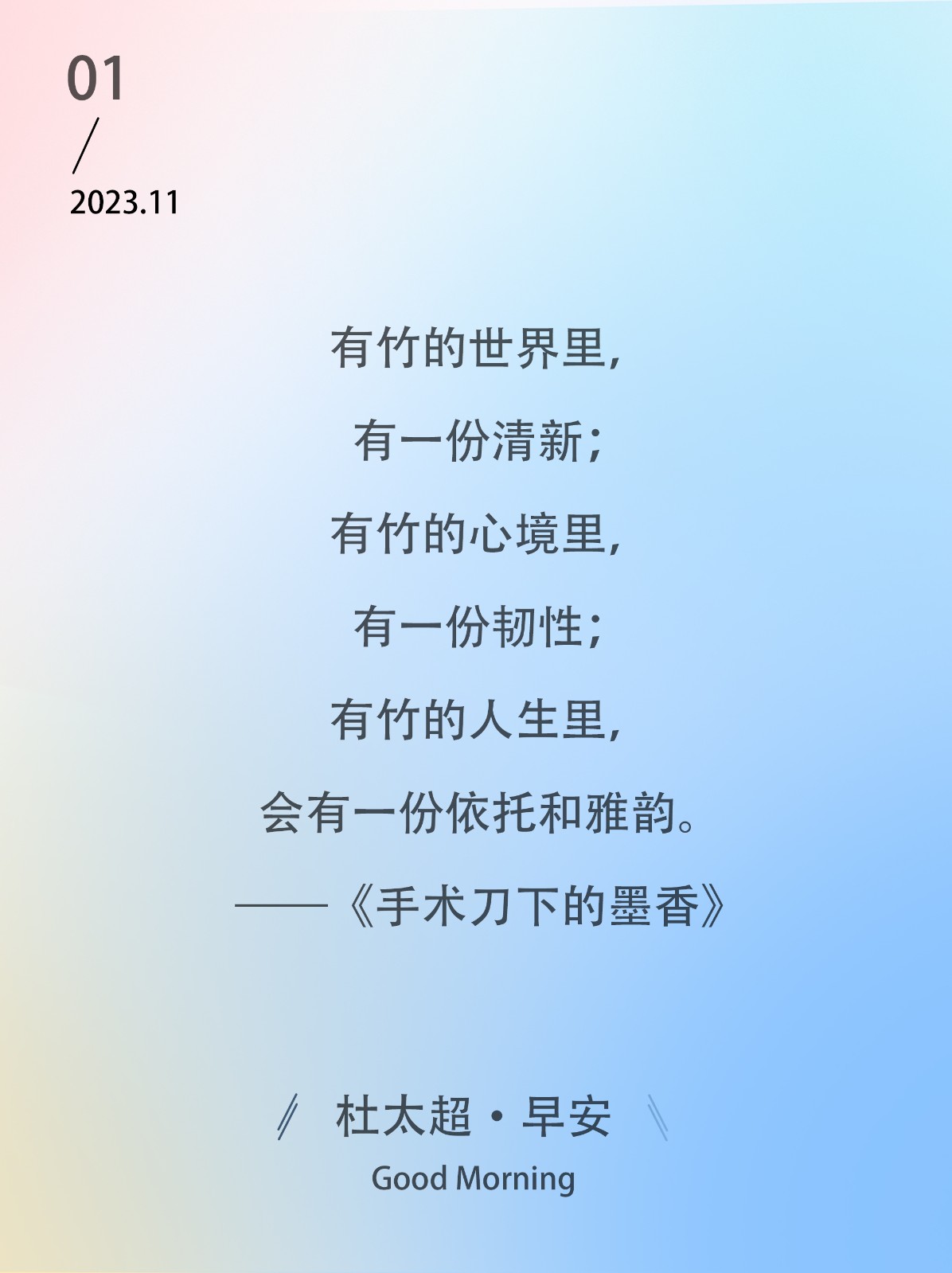 有竹的世界里,有一份清新;有竹的心境里,有一份韧性;有竹的人生里,会有一份依托和雅韵。——《手术刀下的墨香》