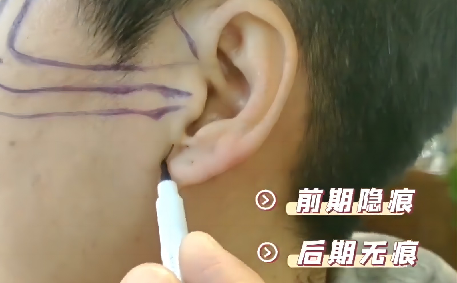 拉皮手术切口设计因人而异,主要看面部松弛下垂的程度。设计原则是用尽可能小的创伤实现最大化面部提升效果。