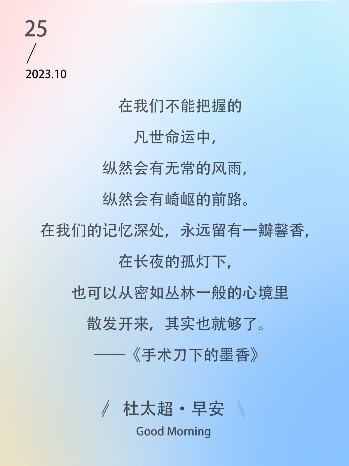 在我们不能把握的凡世命运中,纵然会有无常的风雨,纵然会有崎岖的前路。在我们的记忆深处,永远留有一瓣馨香,在长夜的孤灯下,也可以从密...