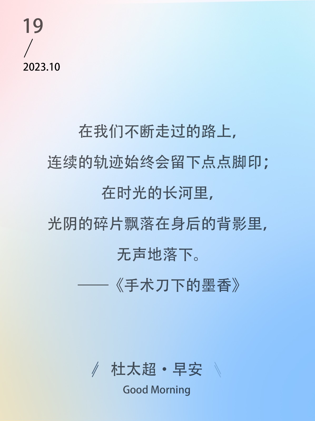 在我们不断走过的路上,连续的轨迹始终会留下点点脚印;在时光的长河里,光阴的碎片飘落在身后的背影里,无声地落下。——《手术刀下的墨香》