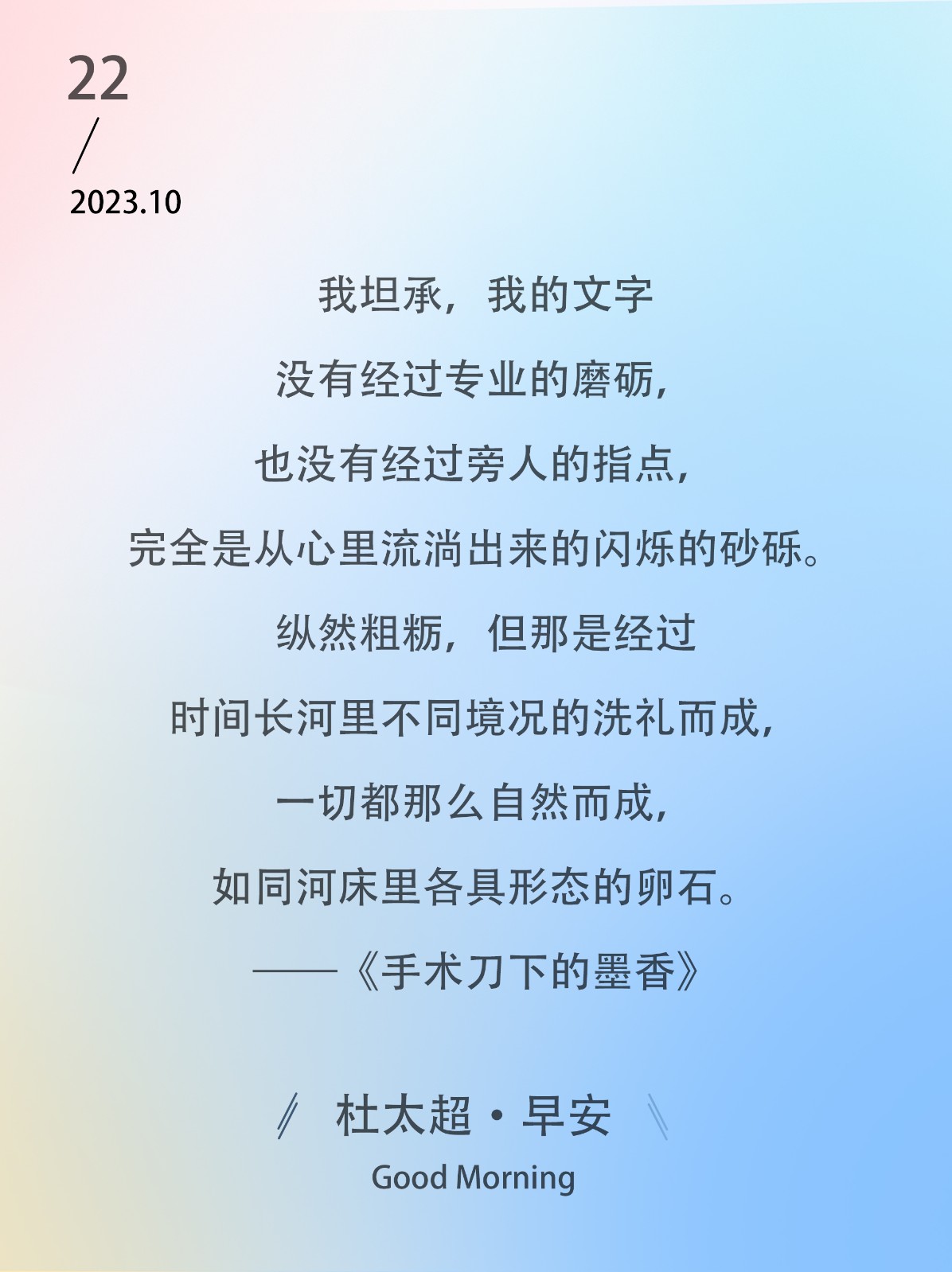 我坦承,我的文字没有经过专业的磨砺,也没有经过旁人的指点,完全是从心里流淌出来的闪烁的砂砾。纵然粗粝,但那是经过时间长河里不同境况...