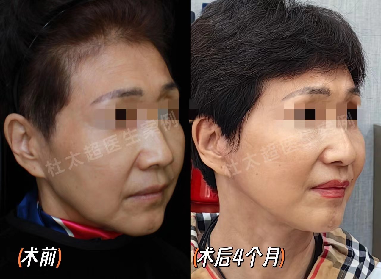 拉皮提升手术 已满4个月,切口在颞部发际线内,和耳前位置,现在已看不出什么手术痕迹。并且耳垂没有变形问题,耳屏脊保留完好。中面部变...