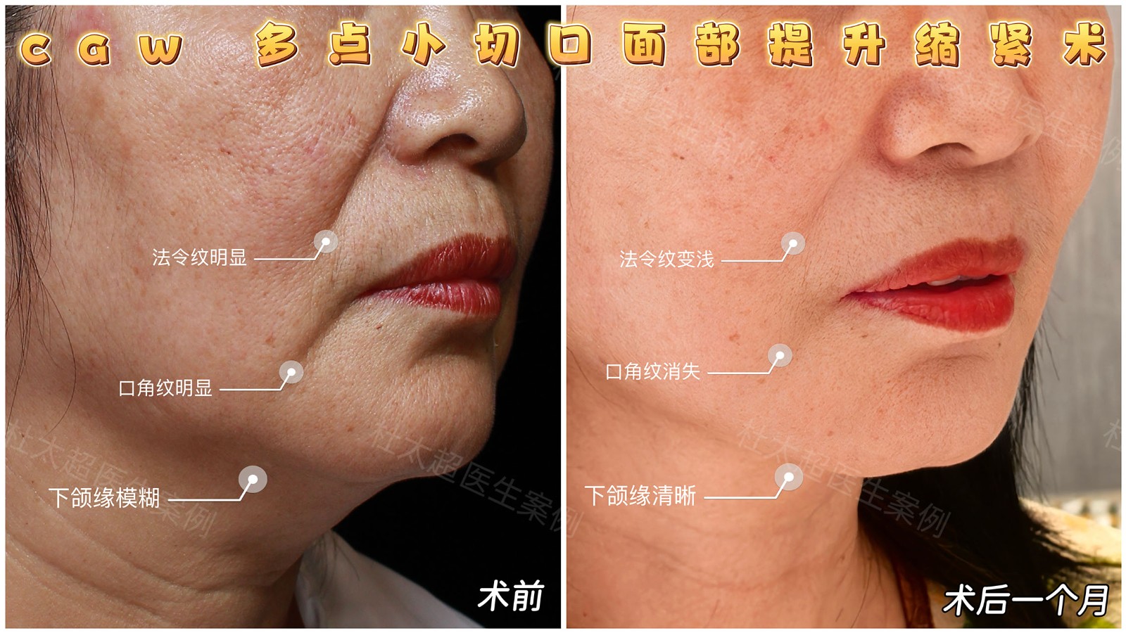 caw多点小切口提升术效果实拍!术前法令纹、口角纹深,下颌线模糊;术后1个月,纹路淡化、下颌线收紧,面部轮廓直接“回春”,技术硬不硬,...