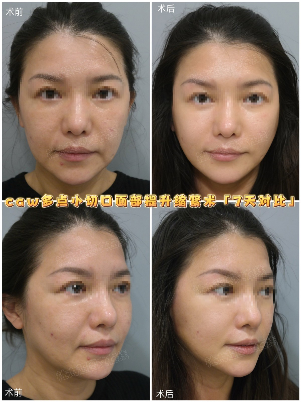 40 + 做拉皮多是为解决垮脸:下颌线模糊、苹果肌下垂、法令纹深。该求美者术后 7 天肿胀减轻但未消完,能看出面部被提起,比如苹果肌下...