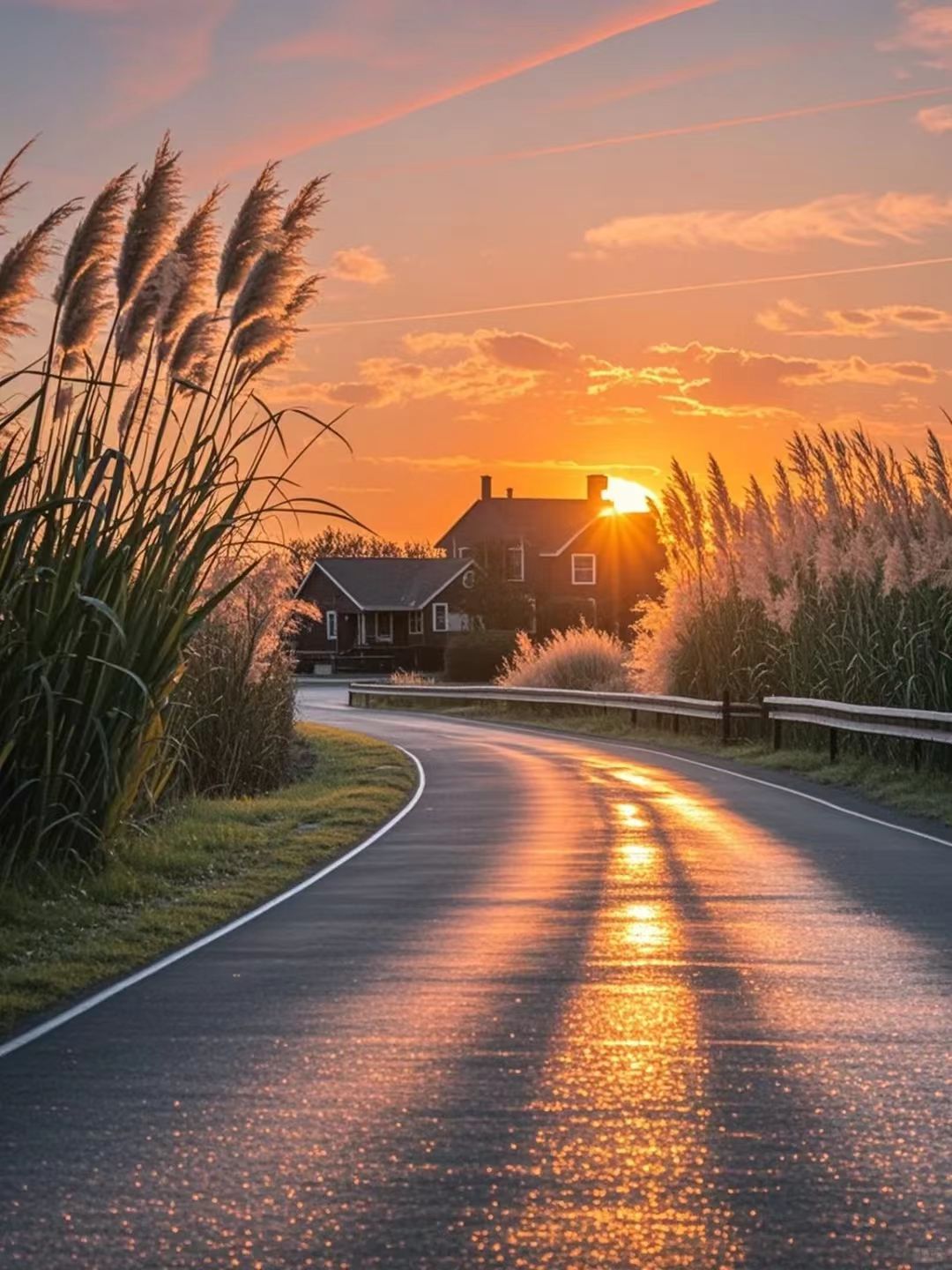 偶尔在通往远处的小路上散步,忽然看见极远处的山肩上挂着一轮夕阳,白云依偎着青山,这时我会想:如此美丽的夕阳预示着精彩的一天即将落幕...